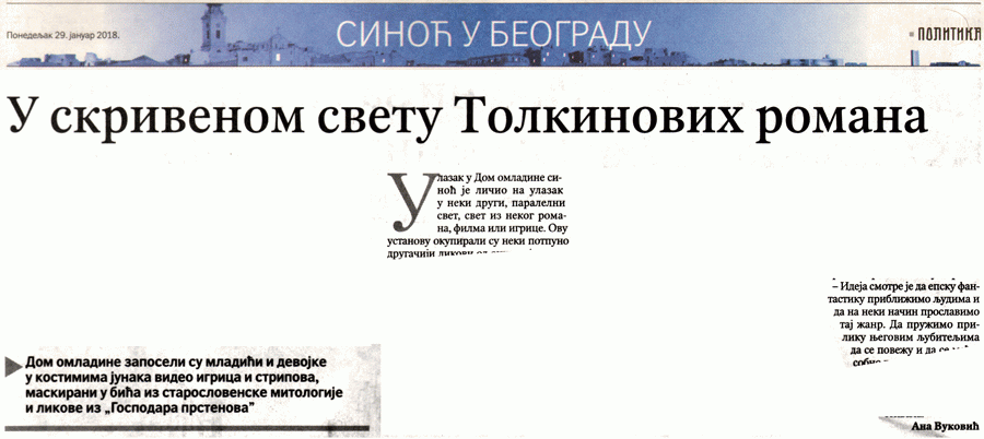 (2) Данас у викенд-броју “Данаса” па у прилогу “Недеља” па на стр. X, приказ књиге српског стрипа Косингас, на основу романа, у фантази жанру, мача и врача.