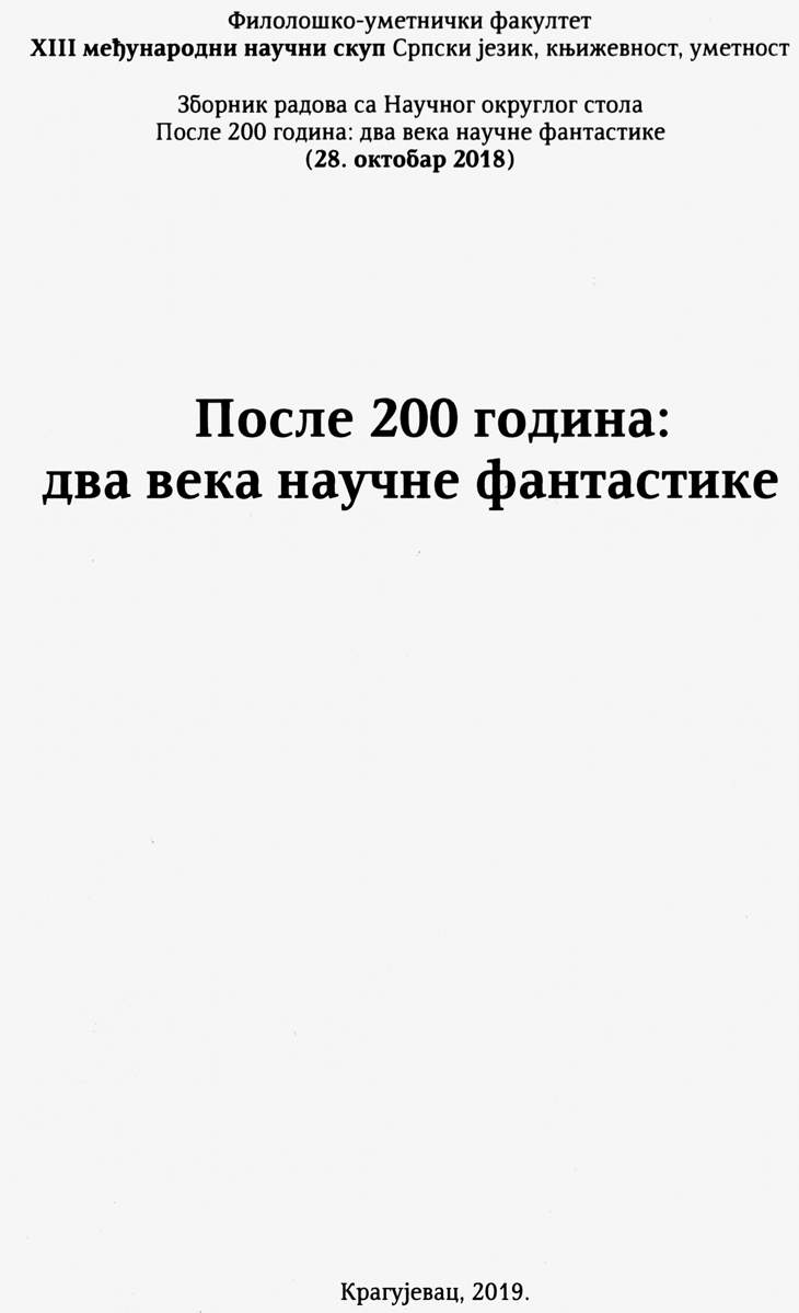 Разговор поводом објављеног зборника „После 200 година: два века научне фантастике” (Филолошко-уметнички факултет у Крагујевцу, 2019)
