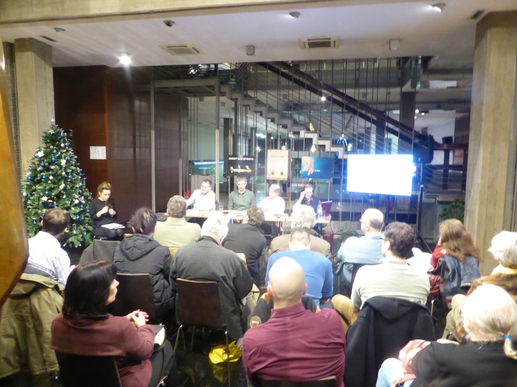 Учесника у овој трибини је било много више него што би се на први поглед могло помислити. Формално, само четворо говорника; они имају радове у Зборнику; они су ту на овој првој слици; гледано с лева на десно (кад се гледа из публике) то су били: