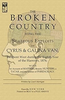 A dark journey to a time when wagon trains have retreated and the Old West is haunted by bonepickers and starving tribes, THE BROKEN COUNTRY: BEING THE SCABROUS EXPLOITS OF CYRUS & GALINA VAN, HELLBENT WEST DURING THE EIGHTH YEAR OF THE HARROWS, 1876; WITH AN ACCOUNT OF MAPPERS, BOUNTY HUNTERS, A TATAR, AND THE SCIENCE OF PHRENOLOGY is unlike any other book you will read this year.